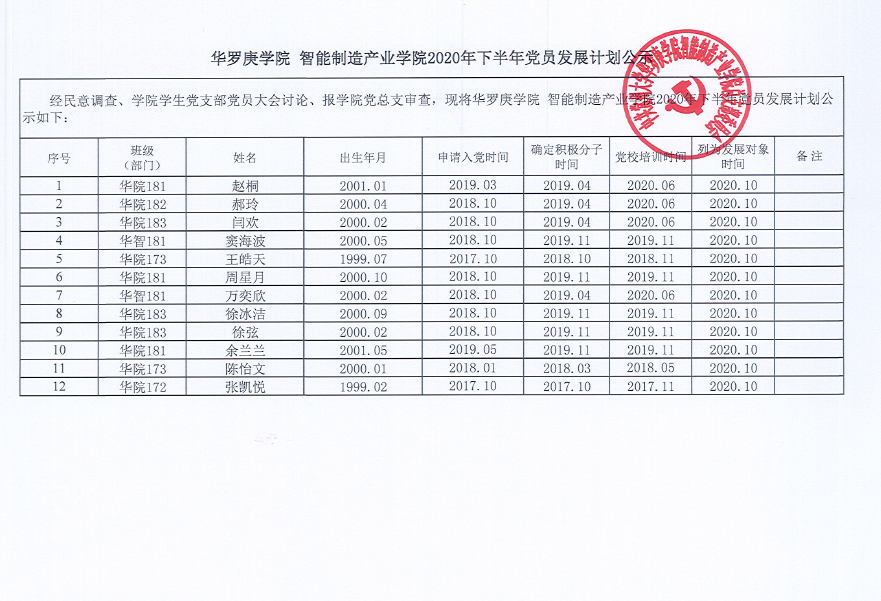 篮球直播88 智能制造产业篮球直播88 2020年下半年党员发展计划公示