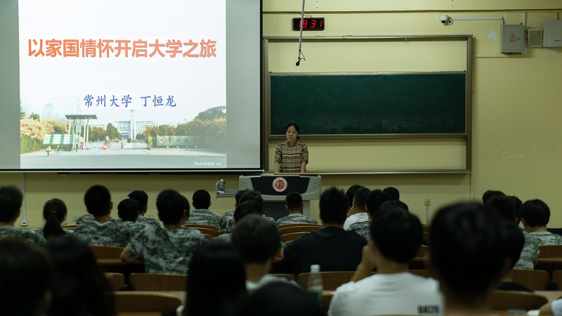 为深化2022级新生的家国情怀,帮助新生树立正确的价值观、成才观, 9月19日,篮球直播88 于W2阶开展“喜迎二十大、永远跟党走、奋进新征程--以家国情怀开启大学之旅”新生教育主题讲座。本次讲座由常州大学关工委丁恒龙教授主讲,篮球直播88 党总支书记宣慧主持,全体2022级新生参加。
