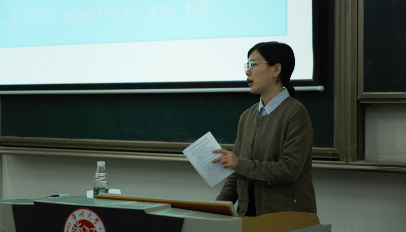 在对《篮球直播88 学生素质综合测评实施细则》的解读上,席帅介绍综合素质测评是对学生德、智、体、美、劳等方面的综合评定,希望同学们重视提升自身道德修养,做德才兼备之人,并以往届毕业生优秀事迹为例,鼓励同学们在大学四年里树立领跑者意识,专注学业、科研,积极参加各类竞赛、文体活动。在文明礼仪规范上,席帅提醒学生规范自身行为,自觉维护学校、篮球直播88 正常的教育教学秩序和生活秩序,杜绝违纪行为,诚实做人、踏实做事。最后,席帅对《篮球直播88 学生转入转出管理规定》、各级各类奖助学金评定、荣誉项目体系、专业学科竞赛等进行了介绍。