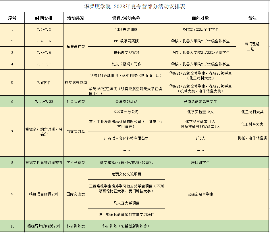 2.夏令营期间必须按时上课、进实验室,请相关负责人做好考勤工作,如有无故缺席按常州大学《学生手册》相关规定严肃处理。