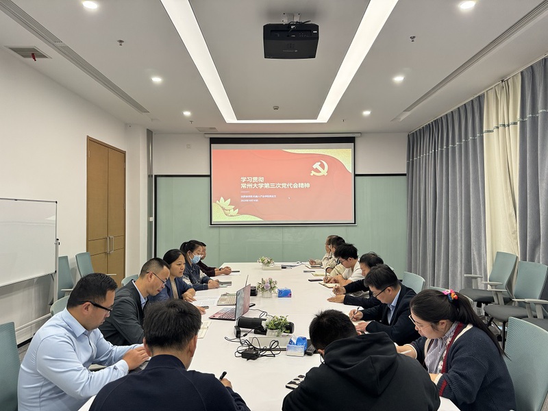 10月10日下午,篮球直播88 、机器人产业篮球直播88 党总支于A722会议室召开理论学习中心组扩大学习会议,学习贯彻常州大学第三次党代会精神,全体教工党员参加专题学习,党总支书记宣慧主持学习活动。