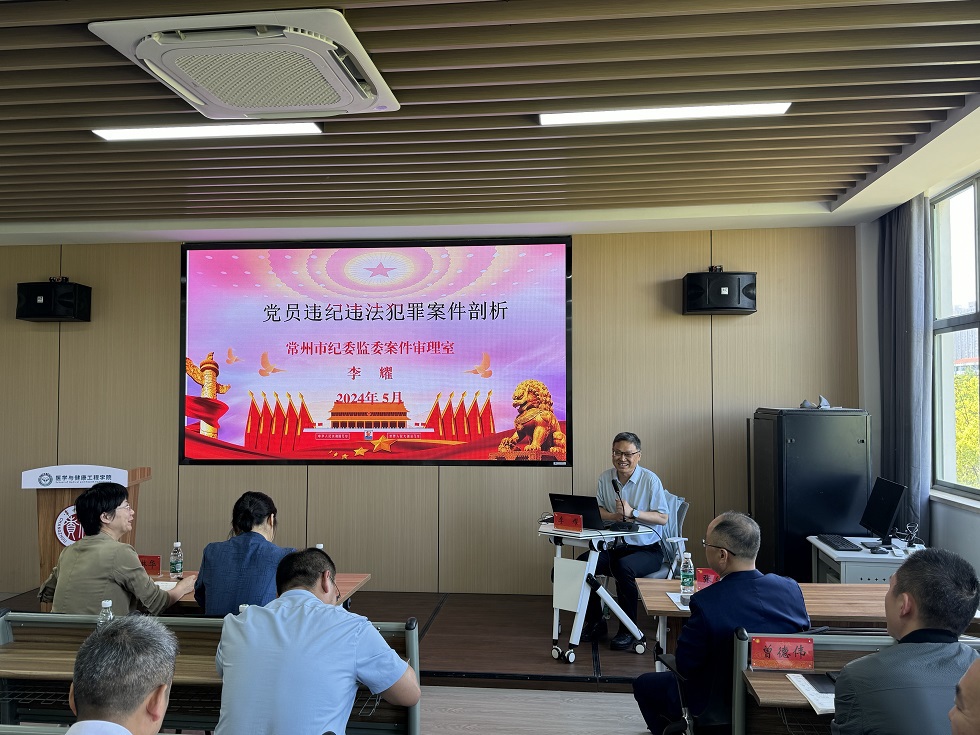 为高质量推动党纪学习教育落地见效,提高党员干部拒腐防变能力,强化党员干部的廉洁自律意识。5月15日下午,篮球直播88 机器人产业篮球直播88 党总支联合医学与健康工程篮球直播88 党总支、安全科学与工程篮球直播88 党总支开展党纪学习教育专题辅导。活动邀请常州市纪委监委案件审理室主任李耀做《党员违纪违法犯罪案件剖析》专题报告。三个党总支全体教工党员及部分学生党员参加活动,活动由医学与健康工程篮球直播88 党总支书记张继延主持。