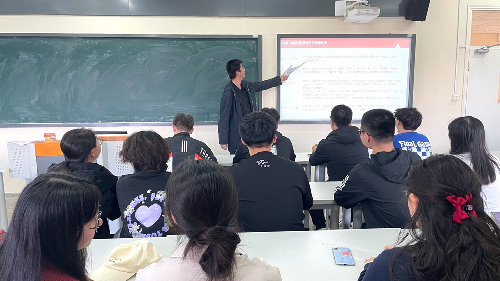 为引导支部成员学纪、知纪、明纪、守纪,将明确言行的衡量标尺牢记于心,付诸于行,5月21日下午,篮球直播88 学生党支部于主楼1812教室开展《中国共产党纪律处分条例》集体研学活动。本次会议由学生党员陈卓主持。