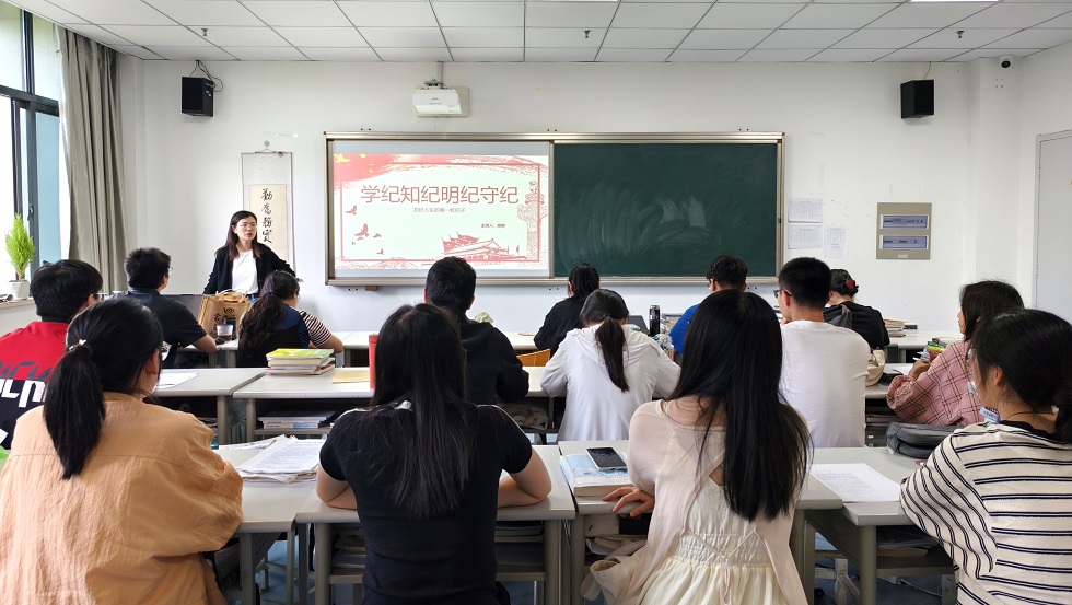 为引导支部党员正确处理自律与他律、治身与治心、高标准与守底线的关系,进一步增强党性修养,强化纪律意识。5月29日下午,学生党支部于逸夫楼307教室开展“学纪知纪明纪守纪,扣好人生的第一粒扣子”专题党课,党课由支部书记席帅主讲。