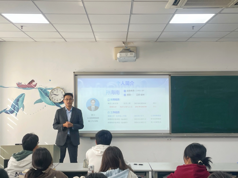 11月5日上午,篮球直播88 特邀我校杰出校友——南通大学孙海南教授走进化工材料大类新生研讨课的课堂,为学生作主题报告。