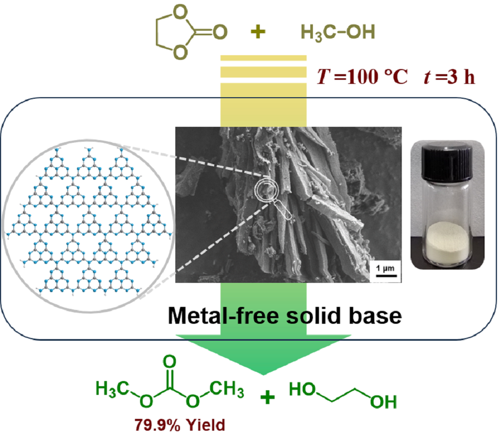 本项研究使用简便的熔盐法成功制备了具有无金属组分、高缩聚度和氮物种可调的C3N4-T材料。与传统热缩聚法制备的g-C3N4相比,C3N4-T具有更高的比表面积、更高的石墨层内缩聚度和碱强度,在碳酸乙烯酯与甲醇的酯交换反应表现出良好的催化活性。该工作不仅深入探究了催化理化性质和活性的关联,而且为用于清洁合成碳酸酯的无金属催化剂的研发提供了思路。