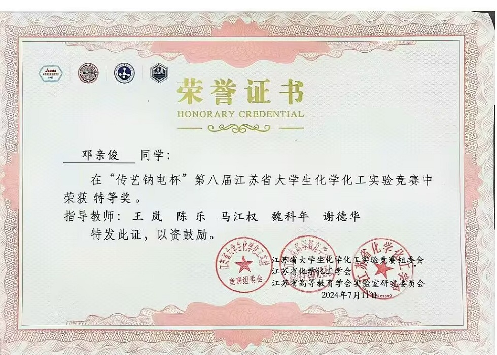 在这场激烈的竞赛中,篮球直播88 选手凭借卓越的表现,荣获特等奖1项和一等奖1项,特别值得一提的是,邓亲俊同学在化工组中荣获特等奖第一名,充分展现了篮球直播88 学子厚实的理论功底、扎实的实验技能、优秀的专业素养和饱满的精神风貌。