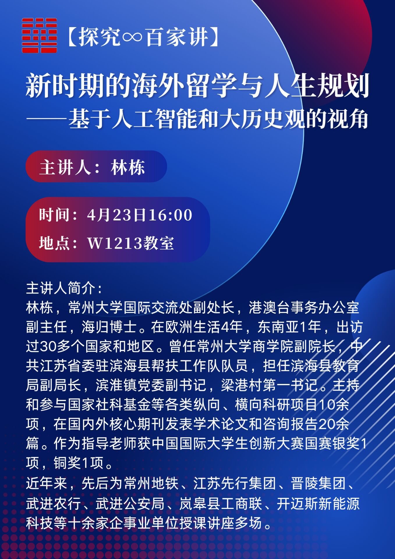 探究∞百家讲:新时期的海外留学与人生规划—基于人工智能和大历史观的视角