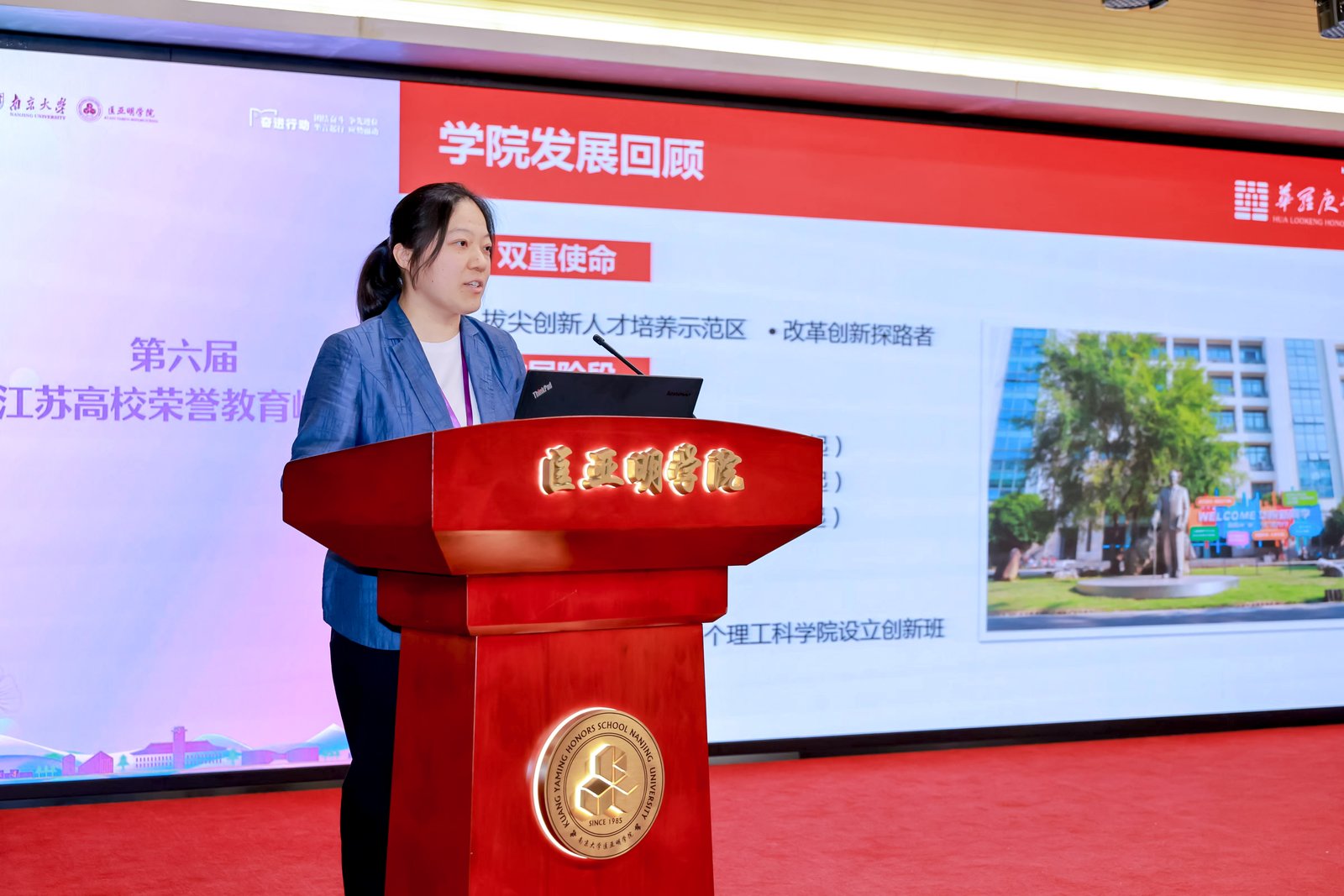 5月25日,第六届江苏高校荣誉教育峰会在南京大学匡亚明篮球直播88 举行。江苏省教育厅高等教育处二级调研员郭新宇、南京大学校长助理姜田,省内外23家荣誉篮球直播88 的近百名代表参加会议。院党总支书记宣慧参会并受邀作交流发言。